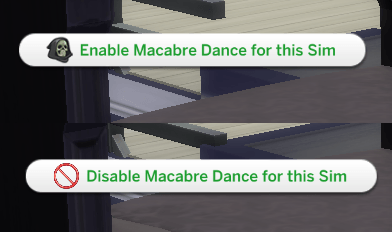 By pressing Shift+Click with cheats enabled on the currently Active Sim, you can select the Enable Macabre Dance for this Sim, which will grant them access to the interaction. If you change your mind, simply Shift-Click the same Sim again and click Disable Macabre Dance for this Sim. That's it!